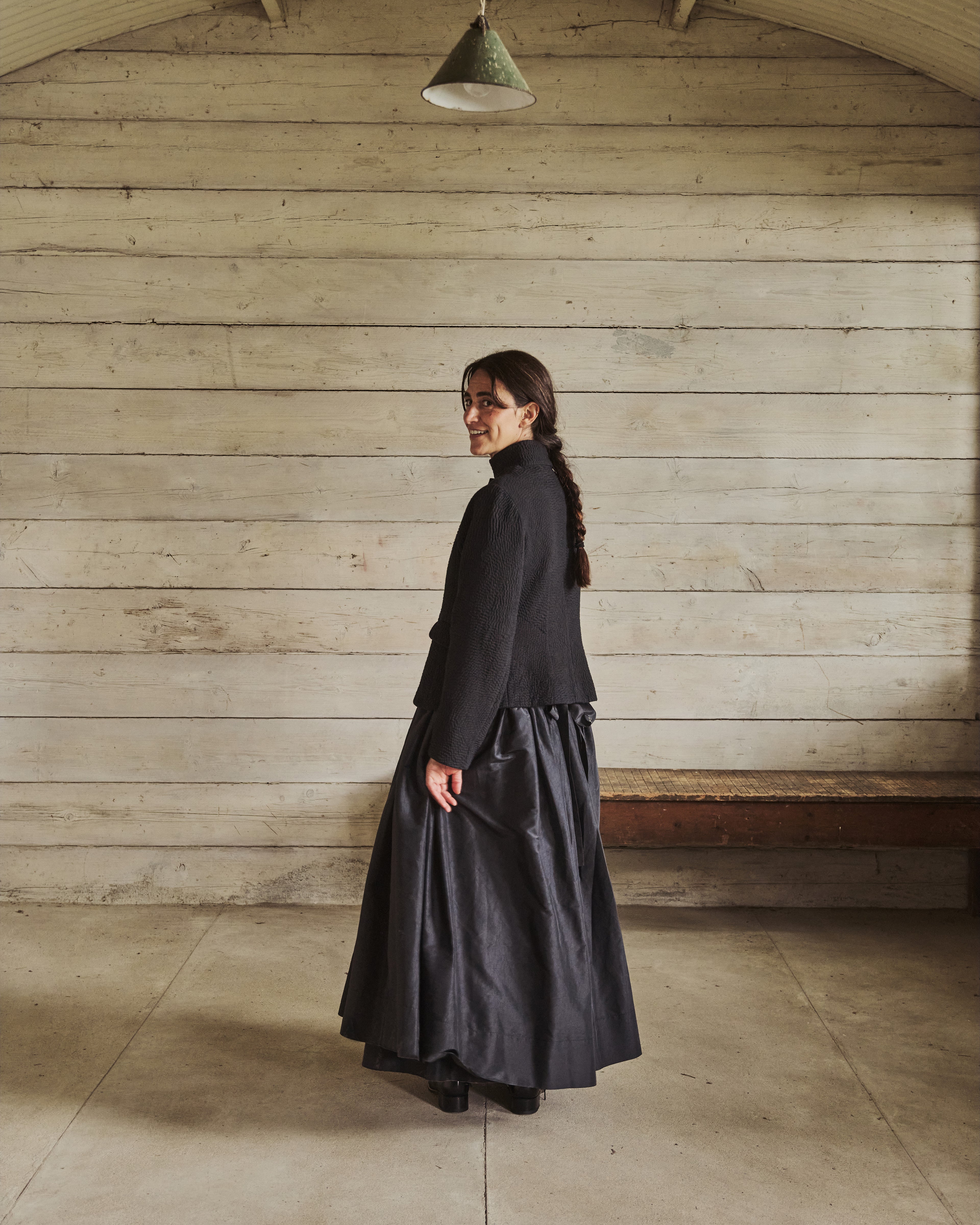 hand stitched khadi macking and silk taffeta in pepper has arrived