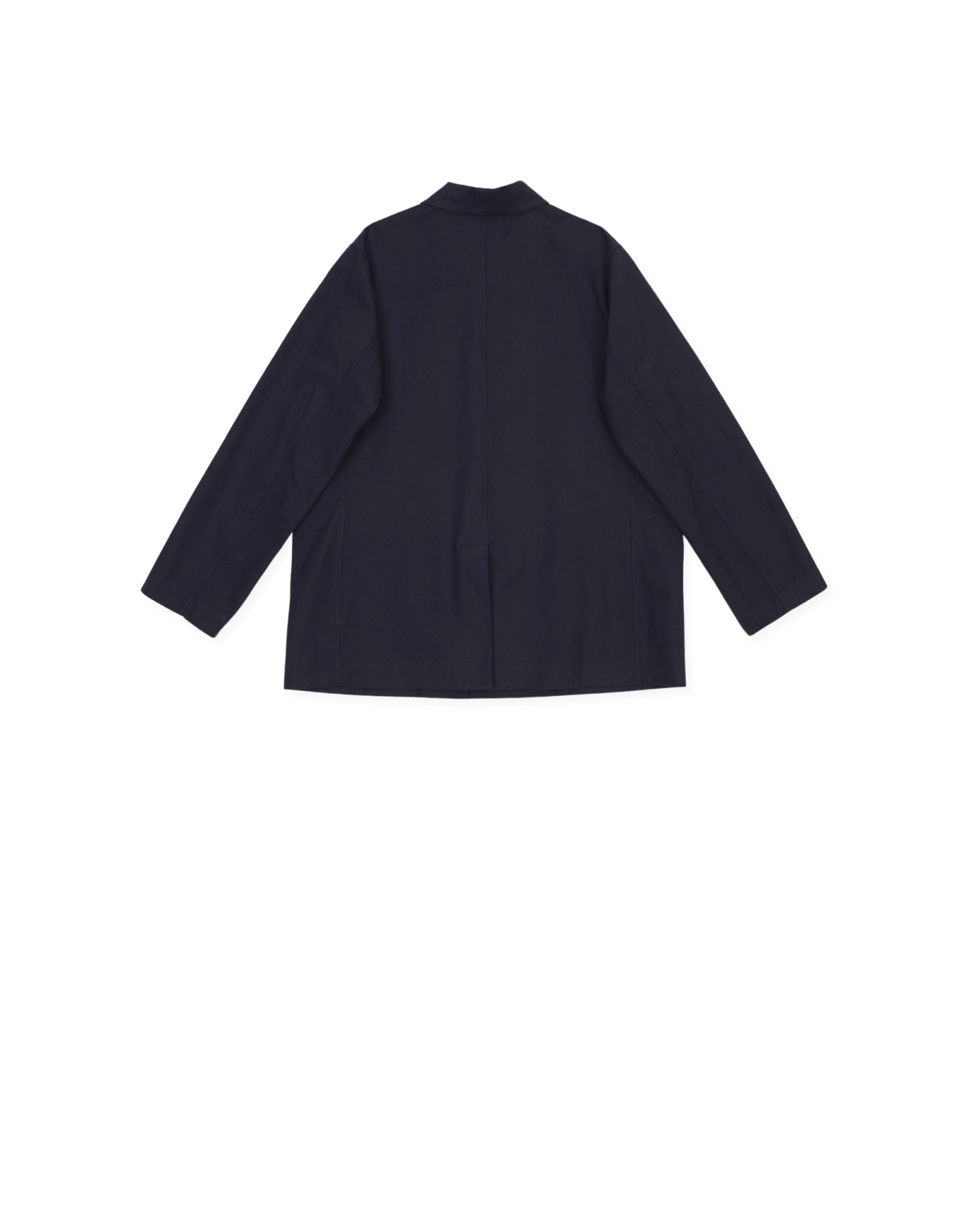 mens boxy jacket, double concealed front pockets, mid waist seam, soft collar