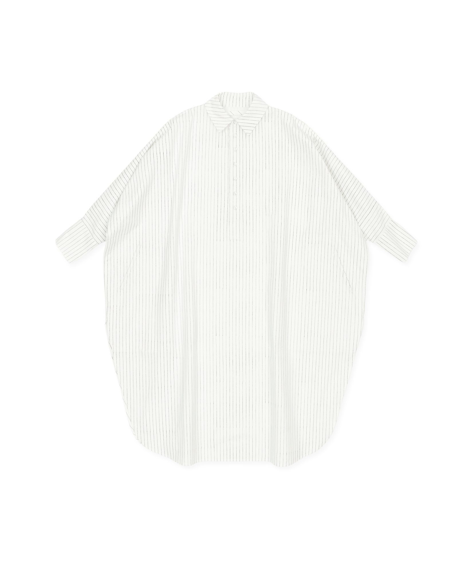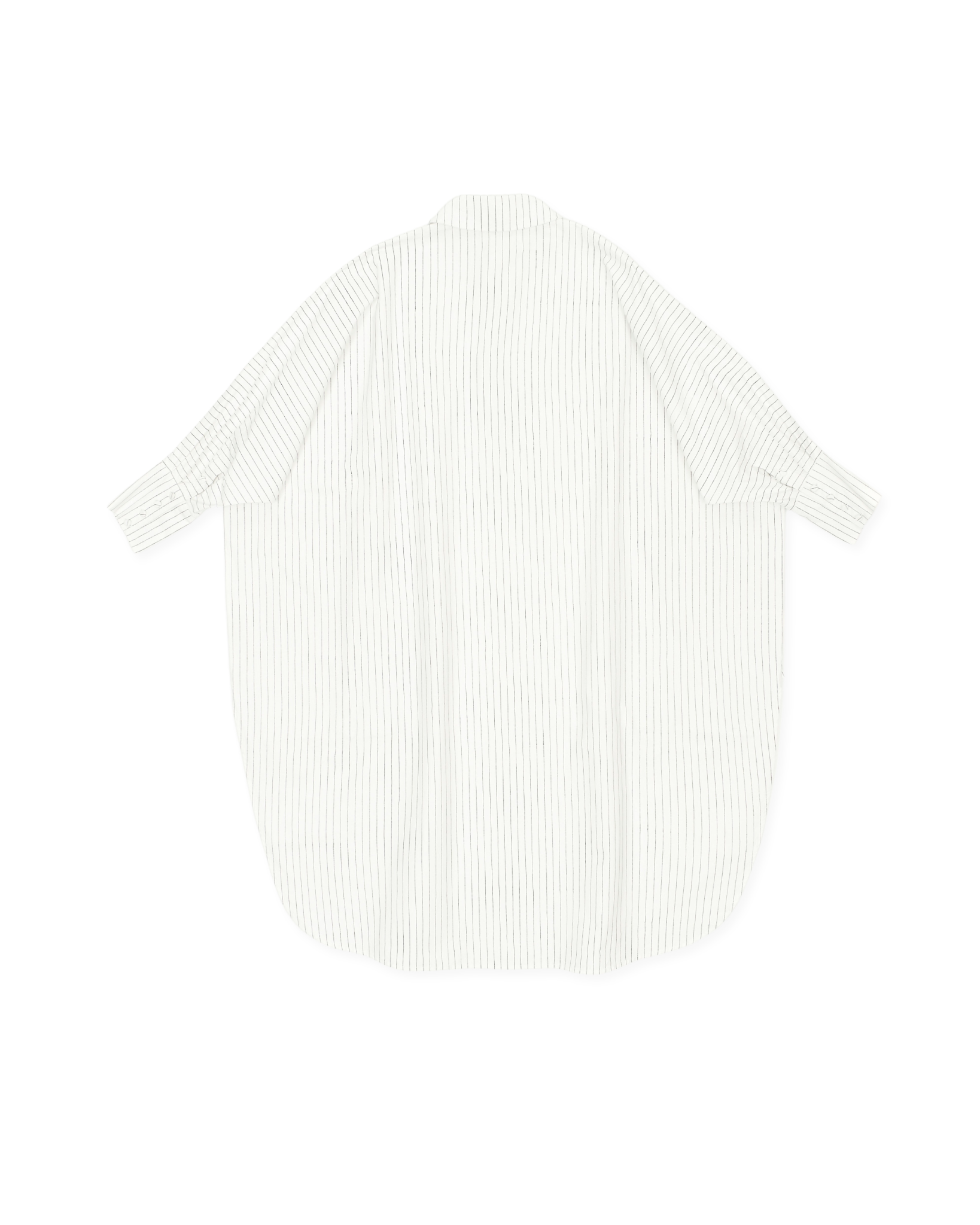 oversized shirt, wide cut, tapered sides, slant front pockets