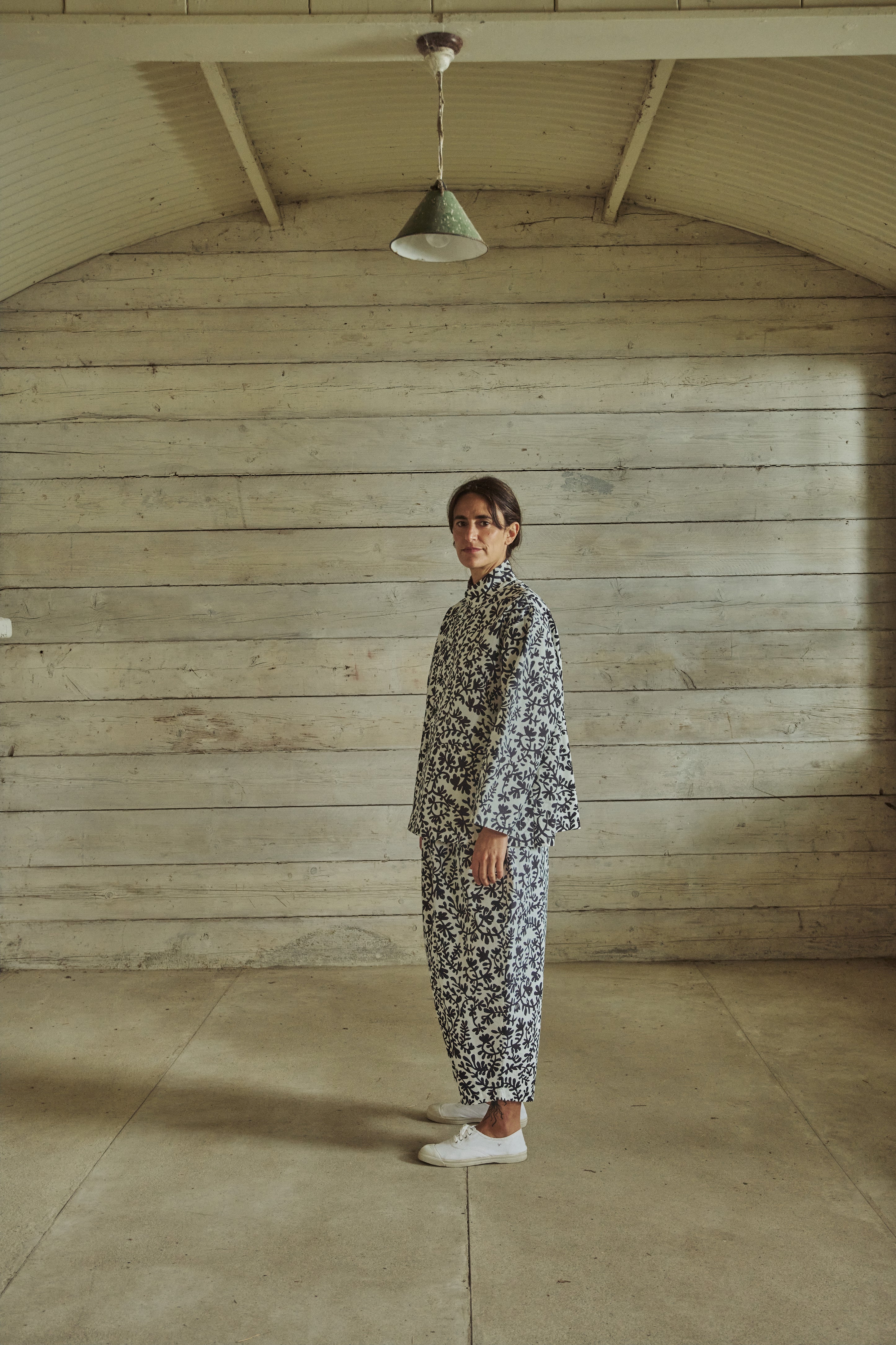 inverted pleat baggy pant, tapered leg, elasticated waist with drawstring,