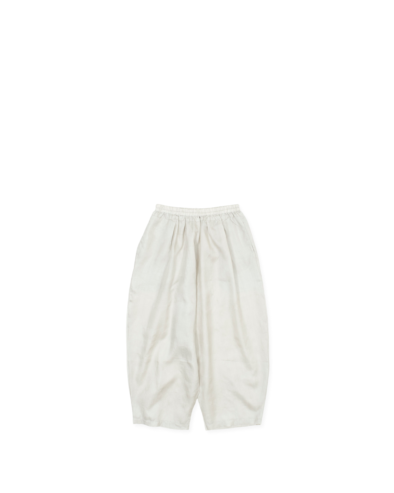silver inverted pleat baggy pant, tapered leg, elasticated waist with drawstring,