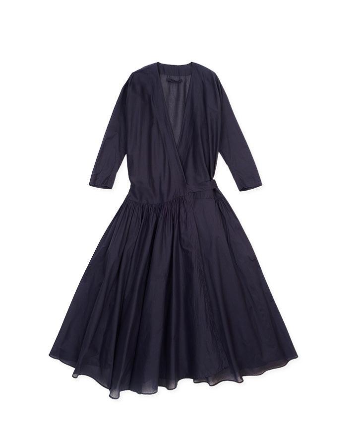 cross over wrap dress, drop waist, long sleeves, gathered skirt