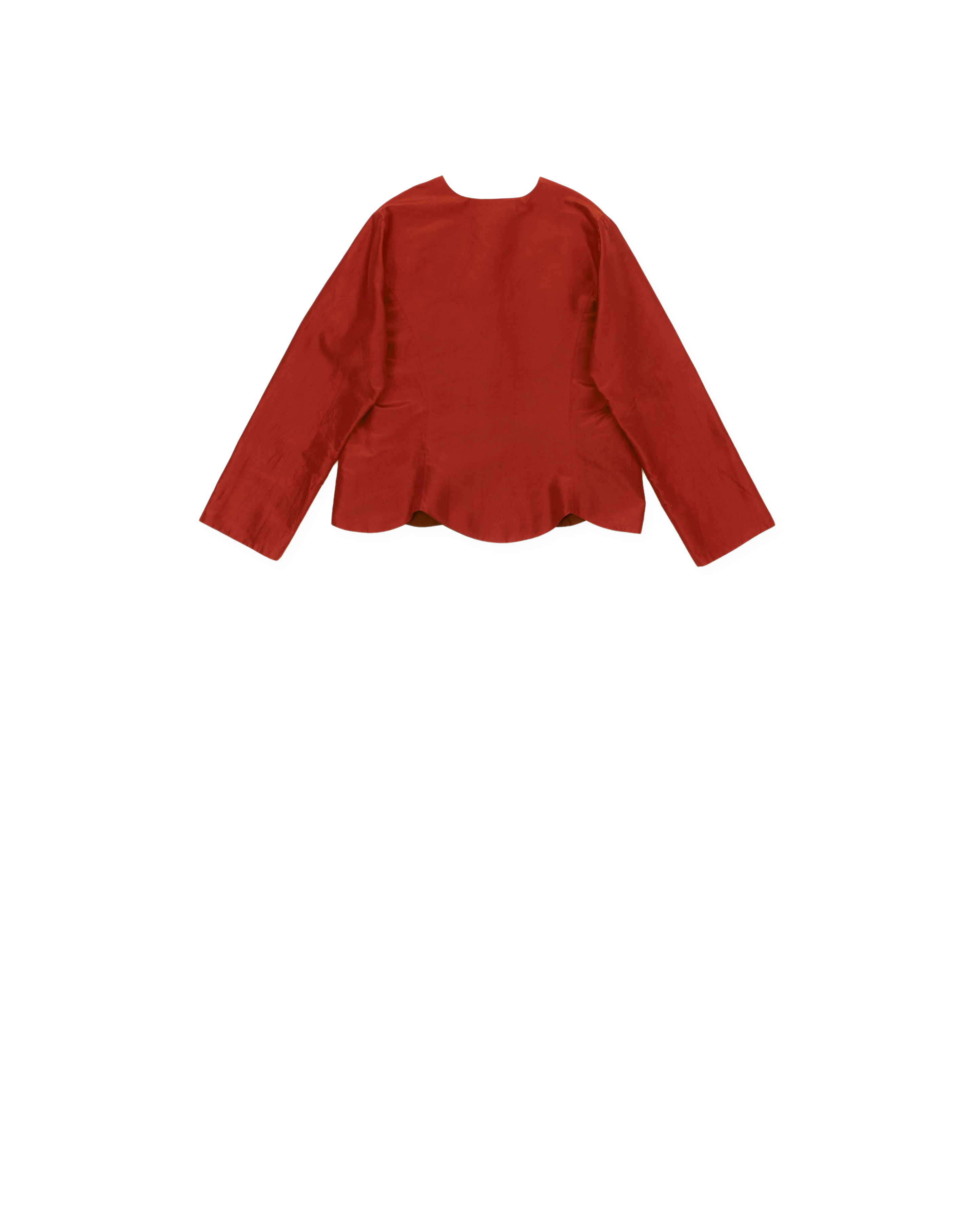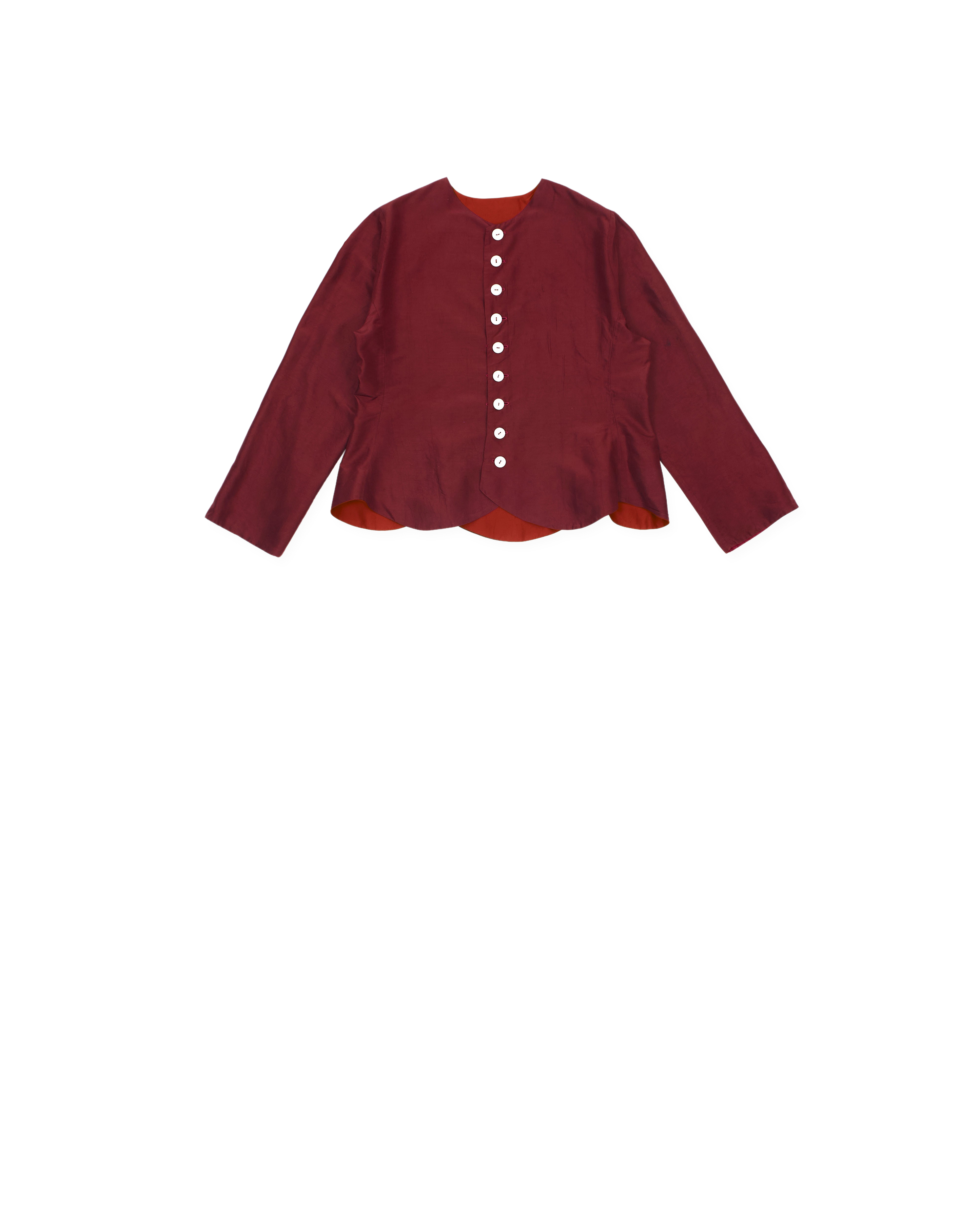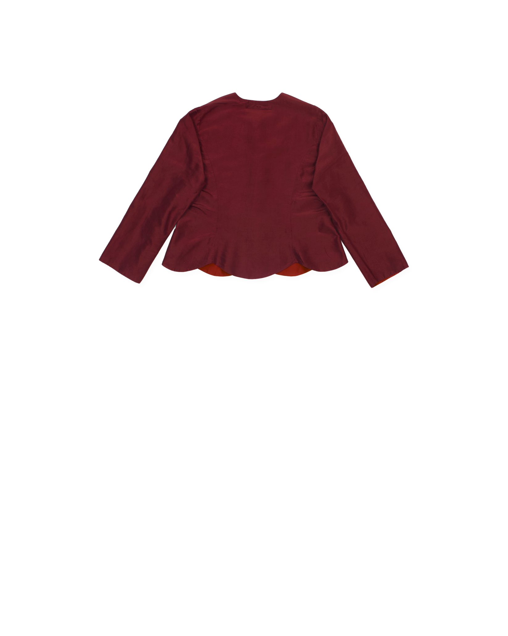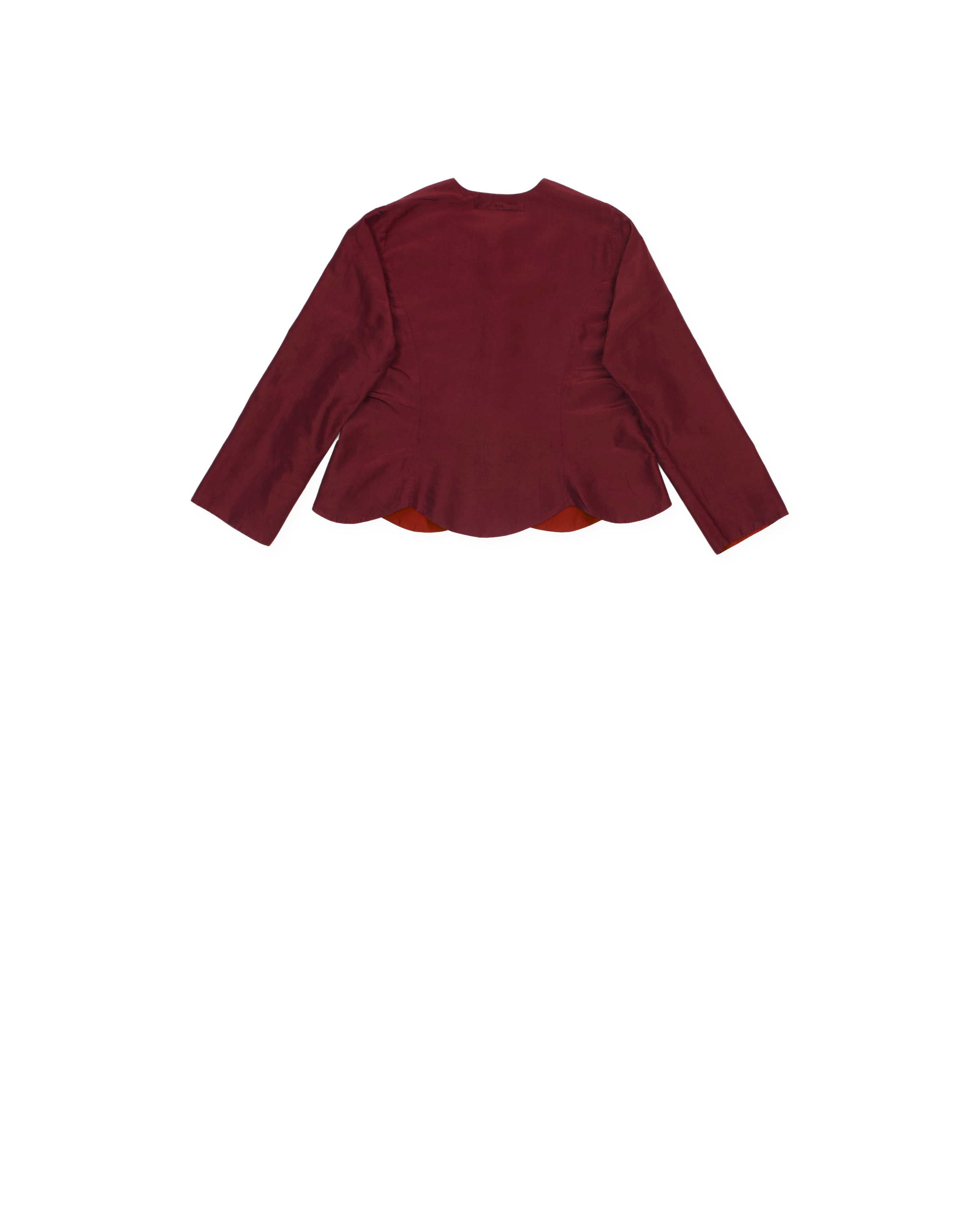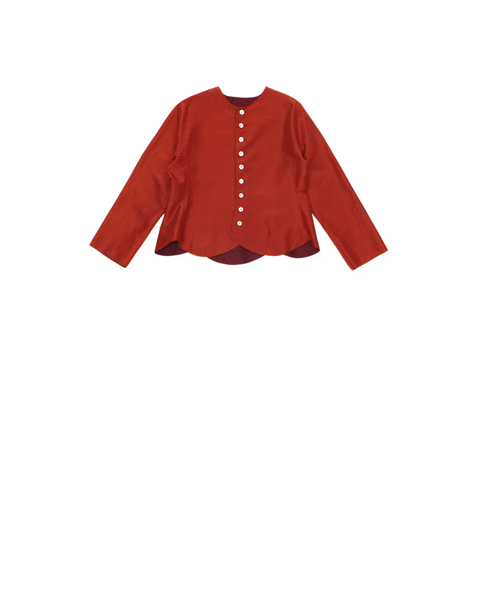 scallop edge jacket, rounded neck, a-line shape, double sided buttons
