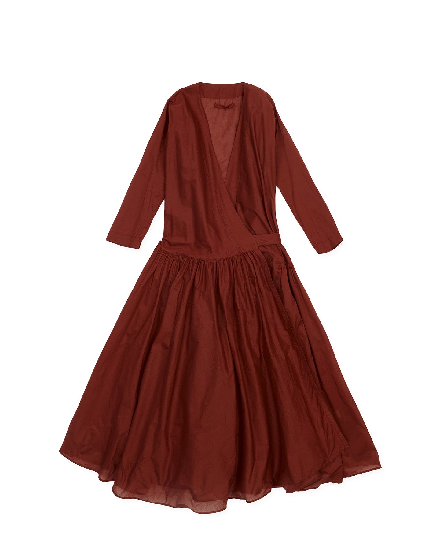 cross over wrap dress, drop waist, long sleeves, gathered skirt