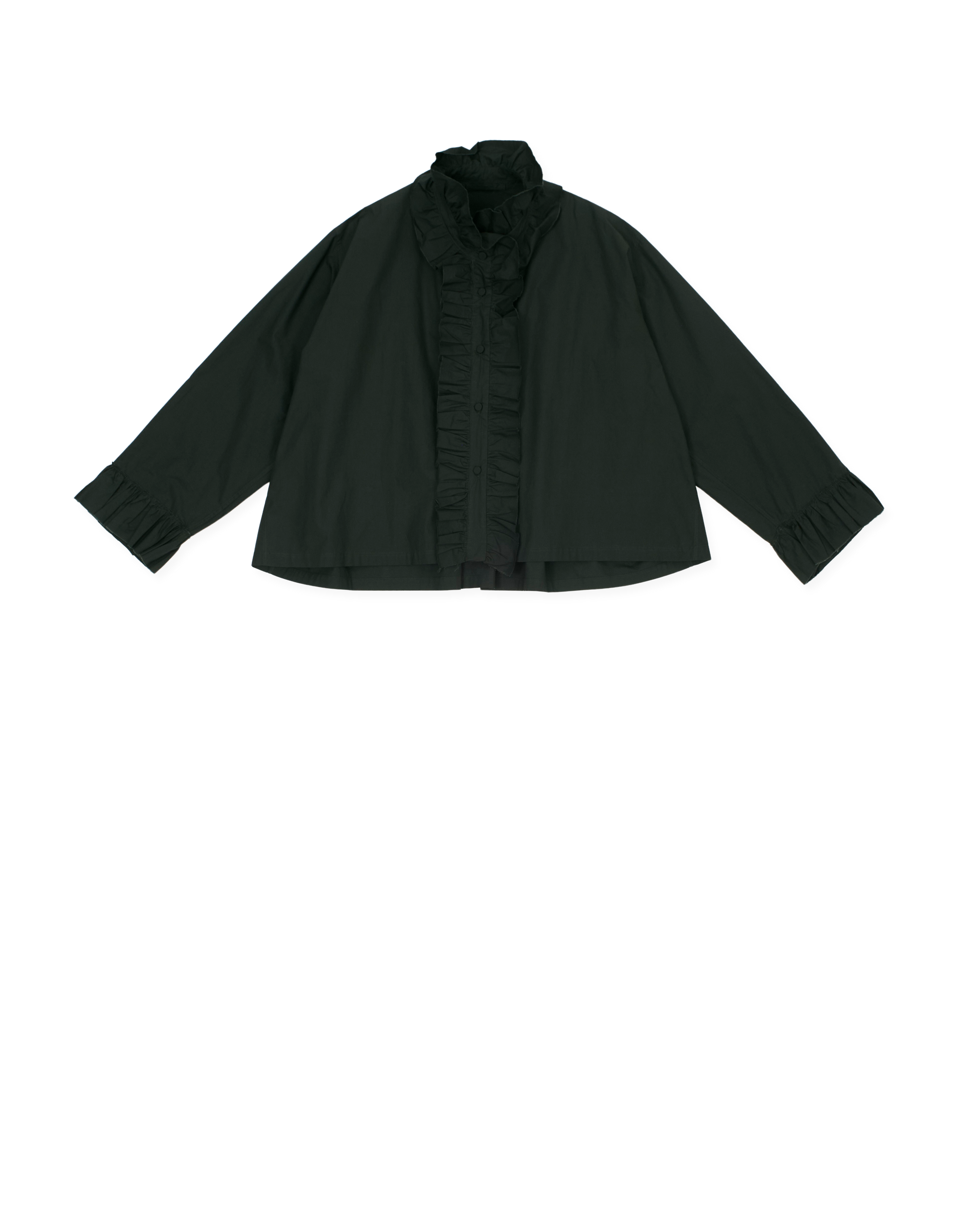 samphire cropped shirt, ruffle cuffs and hem, shorter front, drop shoulder